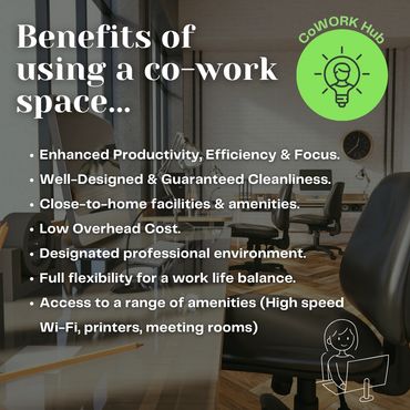 Rent a dedicated desk in our shared office space and you'll have your own exclusive desk and workspace but with the opportunity to collaborate and connect with like-minded people in our CoWork Hub.